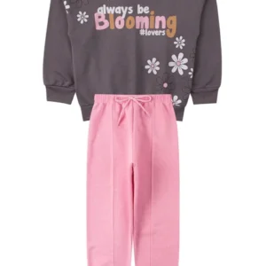 Conjunto moleton 50% algodón y 50% poliéster. ¡Abrigo rosa con estampado frontal y pantalón rosa también!
