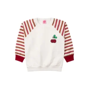 Conjunto de moleton super lindo. Buzo color off white , estampa frontal con piedritas y mangas bitono, pantalón bitono con cordones decorativos!