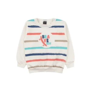 Conjunto de felpa natural para niño, compuesto por dos piezas. Moleton de felpa (75 % algodón, 25 % poliéster), cuello redondo acanalado, estampado frontal, puños y bajo acanalados. Pantalón de felpa (75 % algodón, 25 % poliéster), cinturilla elástica con cordón decorativo en la parte delantera, etiqueta decorativa termoadhesiva en la parte delantera y puños acanalados.