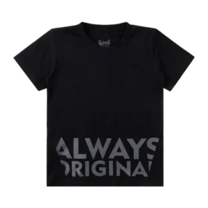 Conjunto de sudadera y media malla Always Original Black para niño, compuesto por dos piezas. Camiseta de media malla (100 % algodón), cuello redondo, estampado frontal y aberturas laterales con pespuntes. Bermudas de sudadera (75 % algodón, 25 % poliéster), cinturilla elástica, cordón ajustable decorativo frontal y etiqueta termoadhesiva frontal.