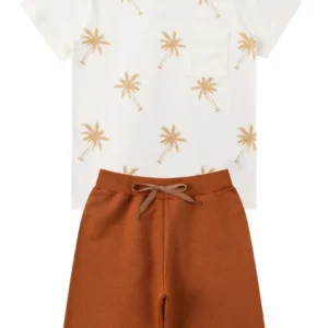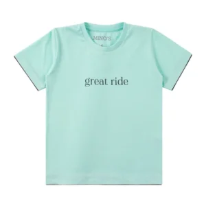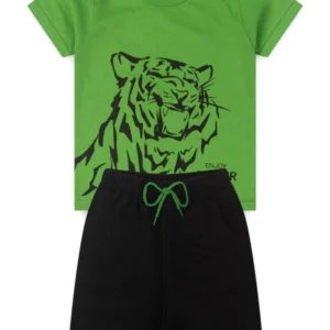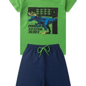 Conjunto de dos piezas Great Ride Aqua Green para niño . 100 % algodón con cuello redondo, estampado frontal, ribete en contraste en mangas y bajo. Bermudas de tejido de sudadera (75 % algodón, 25 % poliéster), cinturilla elástica, aplique decorativo con cordón ajustable en la parte delantera y bolsillos delanteros funcionales.
