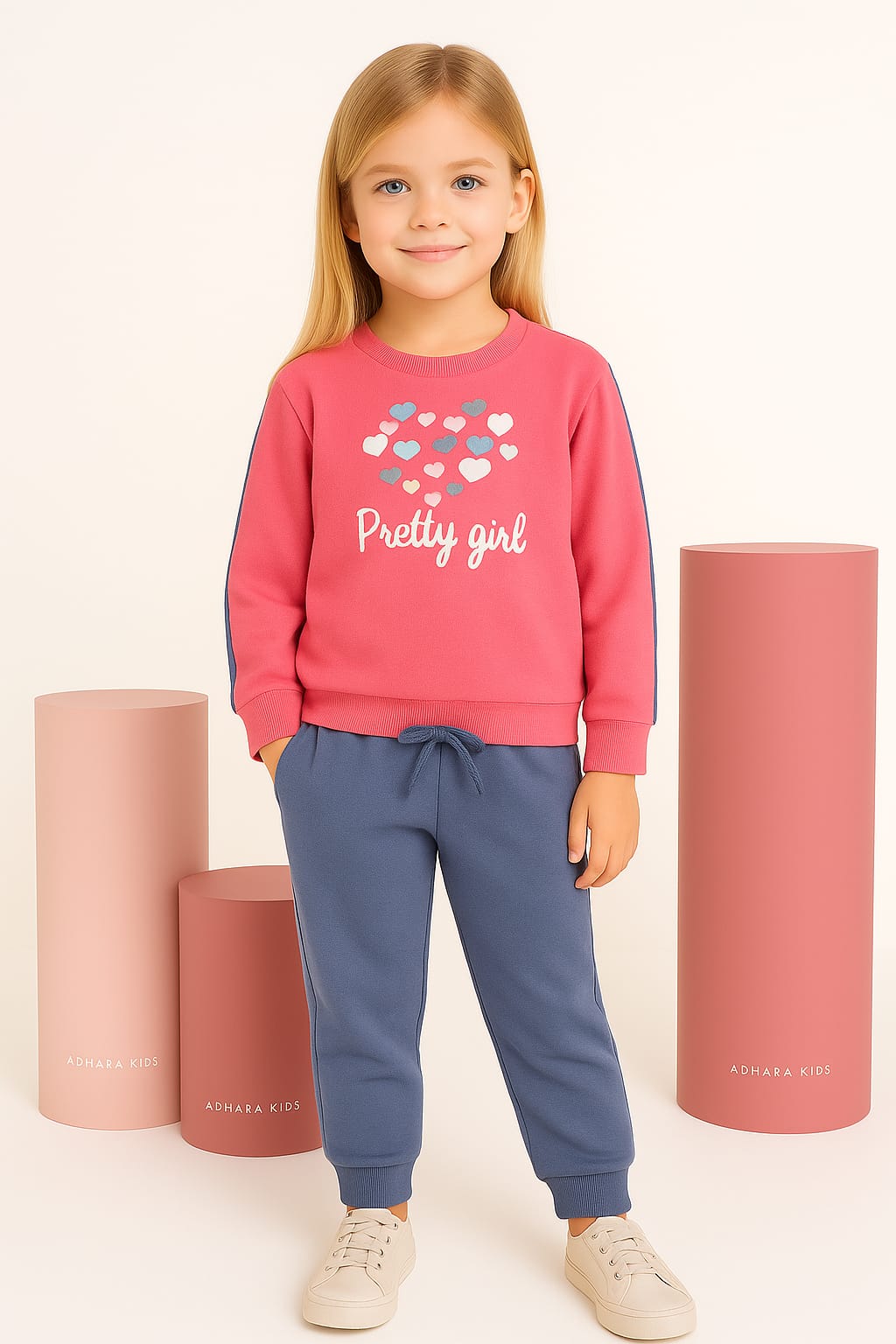 Conjunto para niña de felpa natural Pretty Girl, compuesto por dos piezas. Moleton de felpa (75 % algodón, 25 % poliéster), cuello redondo acanalado, estampado frontal con detalles de relieve abullonado y purpurina, mangas con aplique decorativo de filete, puños y bajo acanalados. Pantalón de felpa (75 % algodón, 25 % poliéster), cinturilla elástica y aplique decorativo de cordón en la parte delantera, perneras con detalle de corte cosido y puños acanalados.