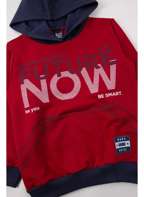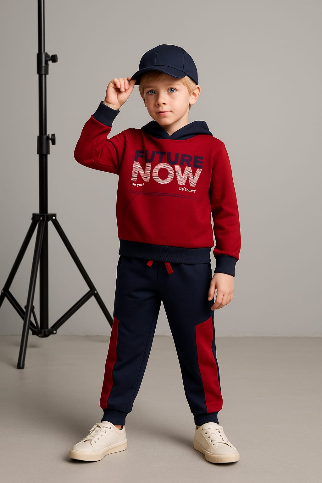 Conjunto para niño , compuesto por dos piezas. Moleton de felpa (75 % algodón, 25 % poliéster), cuello redondo con capucha en color de contraste (75 % algodón, 25 % poliéster), estampado frontal con etiqueta decorativa termoadhesiva, puños y bajo acanalados con aplique en color de contraste. Pantalón de felpa (75 % algodón, 25 % poliéster), cinturilla elástica y cordón ajustable en la parte delantera, aberturas frontales con aplique en color de contraste (75 % algodón, 25 % poliéster), puños acanalados.
