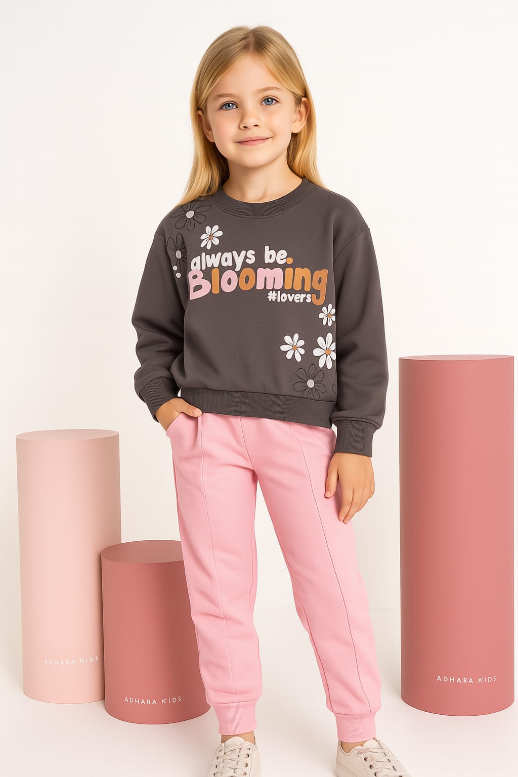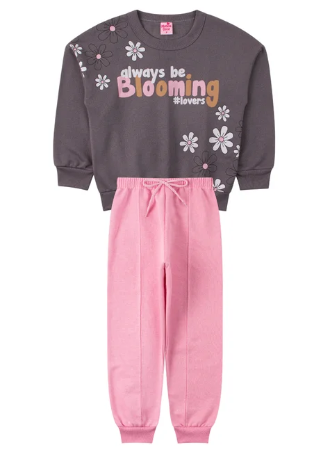 Conjunto de moleton Blooming Natural Plush para niña, compuesto por dos piezas. Moleton de felpa (75 % algodón, 25 % poliéster), cuello redondo acanalado, estampado frontal, puños y bajo acanalados. Pantalón de felpa (75 % algodón, 25 % poliéster), cinturilla elástica y aplique decorativo de cordón ajustable en la parte delantera, perneras con corte cosido y puños acanalados.