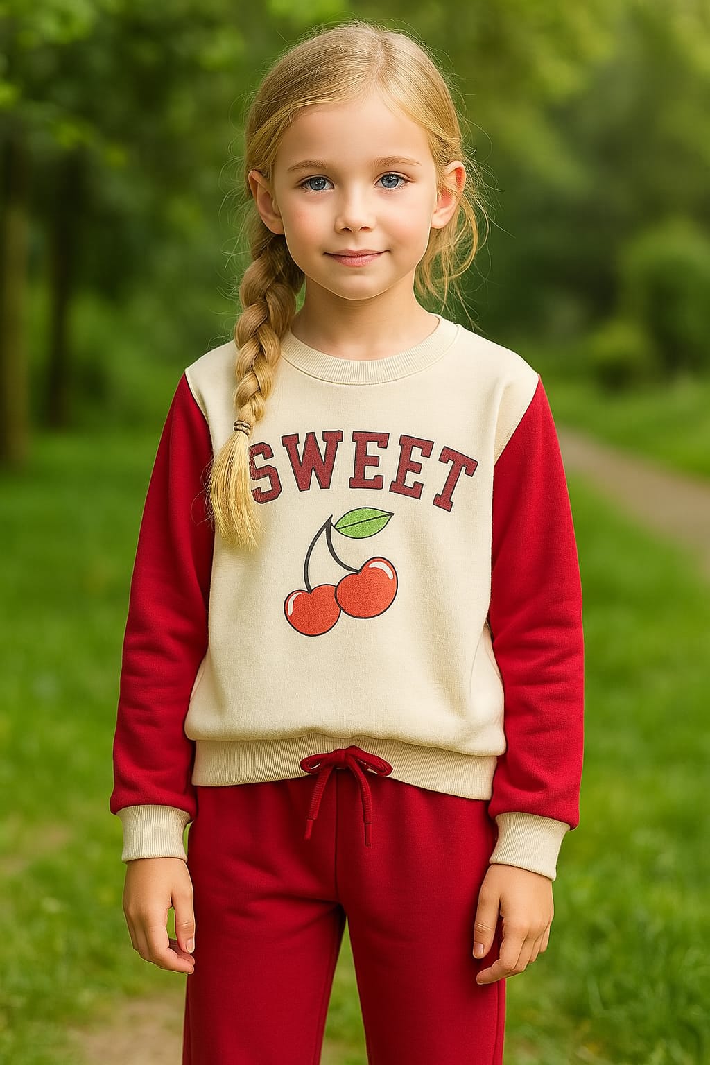 Conjunto de felpa beige dulce para niña , compuesto por dos piezas. Moleton de felpa (75 % algodón, 25 % poliéster), cuello redondo acanalado, estampado frontal, mangas con abertura y aplique de color en contraste (75 % algodón, 25 % poliéster), puños y bajo acanalados. Pantalón de felpa (75 % algodón, 25 % poliéster), cinturilla elástica y cordón decorativo en la parte delantera, y puños acanalados.