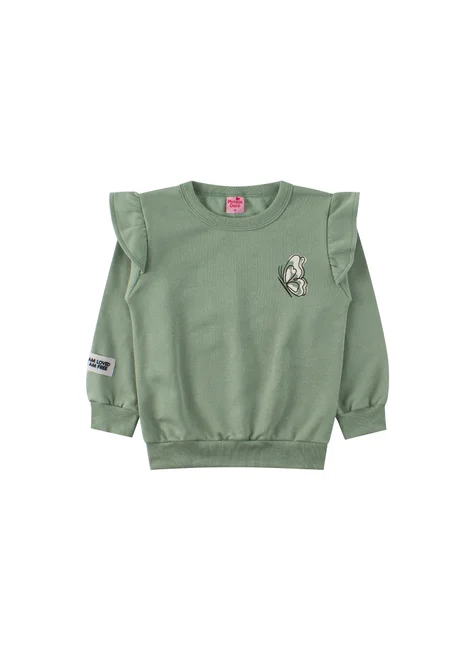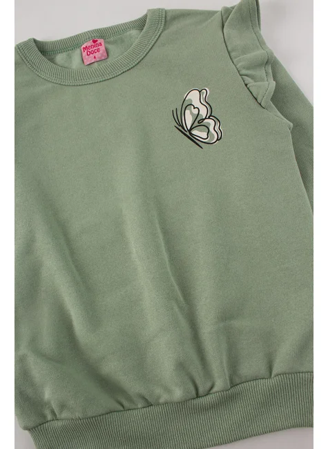 Conjunto de moleton Mariposa en color Beige , compuesto por dos piezas. Parte superior confeccionada en tejido de moleton afelpado (75% algodón 25% poliéster), cuello redondo de canalé, estampado frontal, mangas con aplicación de volante, aplicación de etiqueta de sarga sublimada en una de las mangas, puños y bajo de canalé. Pantalón confeccionado en tejido de sudadera afelpado (75% algodón 25% poliéster), cinturilla elástica con aplicación de cordón decorativo en la parte delantera, puños de canalé.