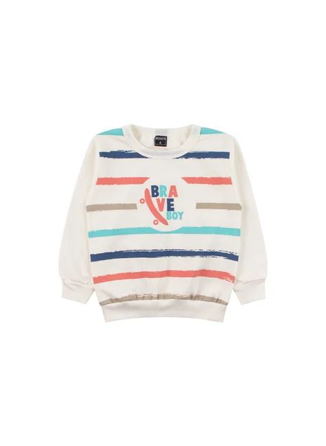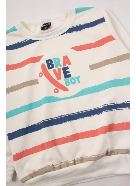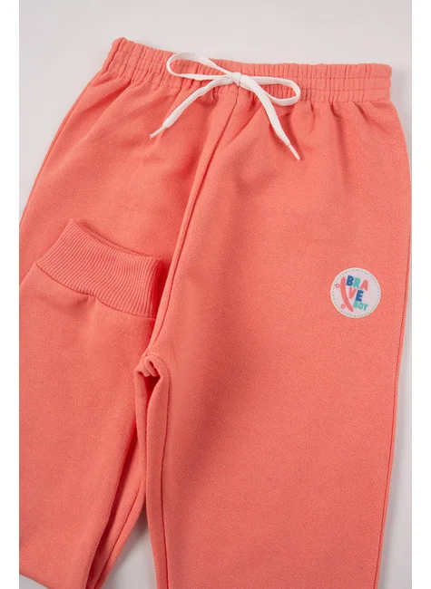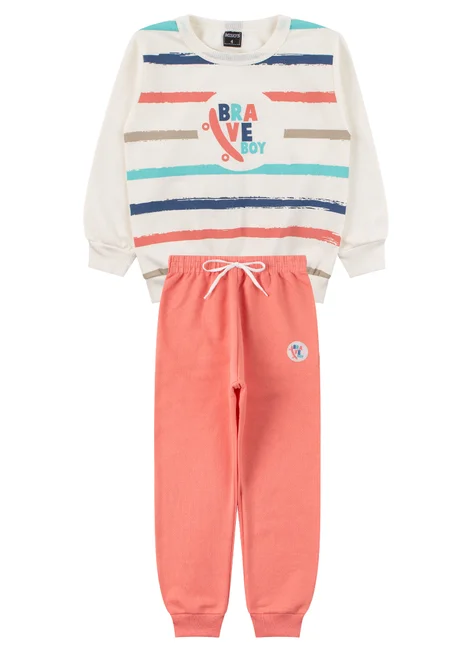 Conjunto de felpa natural para niño, compuesto por dos piezas. Moleton de felpa (75 % algodón, 25 % poliéster), cuello redondo acanalado, estampado frontal, puños y bajo acanalados. Pantalón de felpa (75 % algodón, 25 % poliéster), cinturilla elástica con cordón decorativo en la parte delantera, etiqueta decorativa termoadhesiva en la parte delantera y puños acanalados.