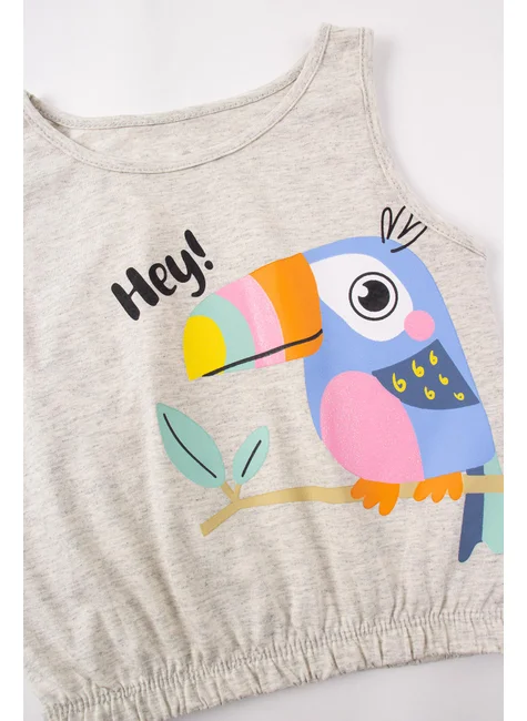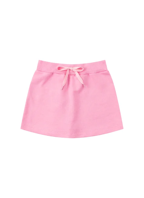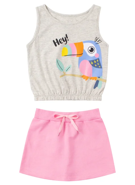Conjunto de media malla Hey Gelo para niña, compuesto por dos piezas. Top de media malla (87 % algodón, 13 % poliéster), cuello redondo, estampado frontal con detalle de purpurina y bajo elástico. Falda corta de sudadera (75 % algodón, 25 % poliéster), cinturilla elástica con ribete y cordón decorativo frontal, solapa frontal.