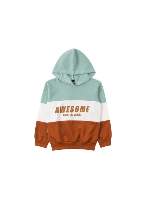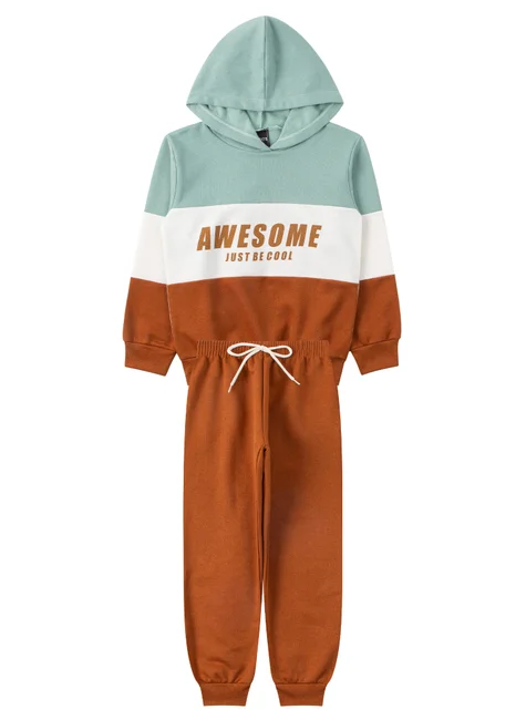 Conjunto de felpa verde Ibiza para niño, compuesto por dos piezas. Moleton de felpa (75 % algodón, 25 % poliéster), cuello redondo con capucha, paneles frontales con aplicaciones en color contrastante y detalle estampado (75 % algodón, 25 % poliéster), mangas con paneles y aplicaciones en color contrastante (75 % algodón, 25 % poliéster), puños y bajo acanalados con aplicaciones en color contrastante. Pantalón de felpa (75 % algodón, 25 % poliéster), cinturilla elástica, cordón decorativo frontal y puños acanalados.