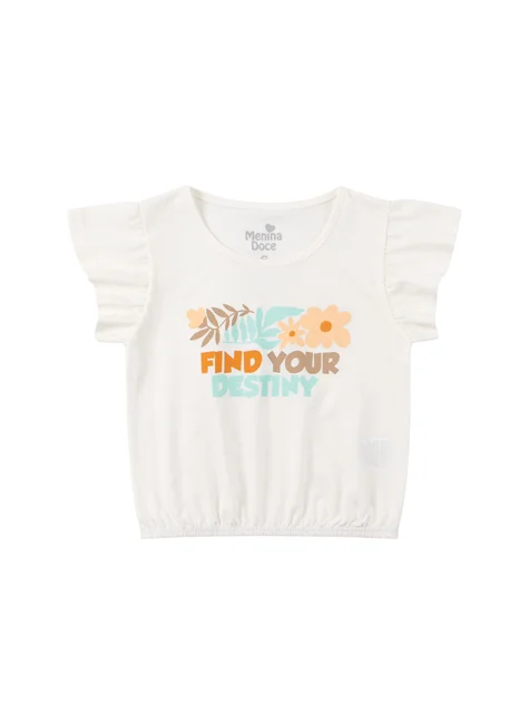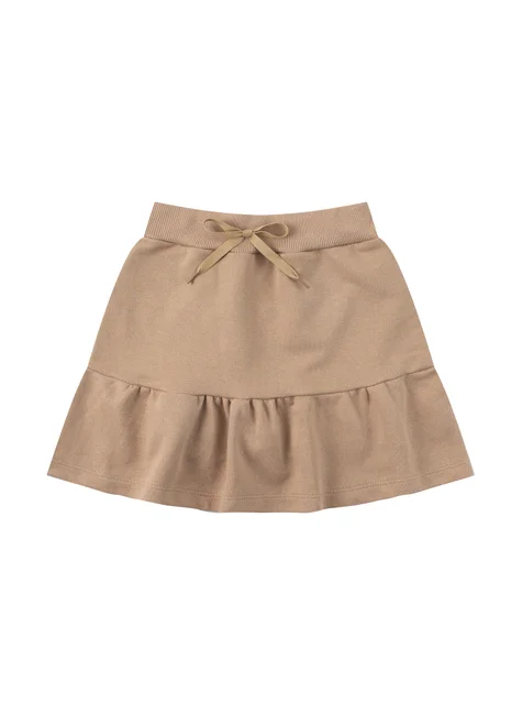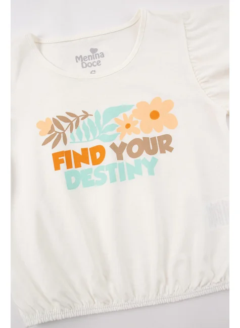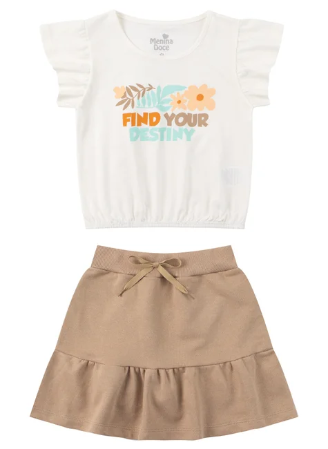 Conjunto Find Your Destiny Natural de media malla para niña, compuesto por dos piezas. Top de media malla (100 % algodón), cuello redondo, estampado frontal, mangas fruncidas y bajo elástico. Falda y shorts de sudadera (75 % algodón, 25 % poliéster), cinturilla elástica y cordón ajustable delantero. Shorts interiores de media malla (100 % algodón) y volante.