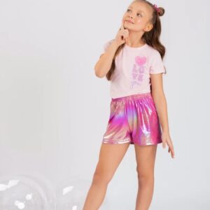 Camiseta 100% algodón con estampado frontal y short brillante, recomendamos lavar a mano.