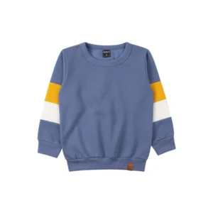 Conjunto de felpa para niño en azul, compuesto por dos piezas. Moleton de felpa (75 % algodón, 25 % poliéster), cuello redondo acanalado, mangas con aberturas y aplique en color de contraste (75 % algodón, 25 % poliéster), puños acanalados, bajo acanalado con etiqueta de clip personalizada en la parte delantera. Pantalones de felpa (75 % algodón, 25 % poliéster), cinturilla elástica y cordón decorativo en la parte delantera, aberturas laterales con aplique en color de contraste (75 % algodón, 25 % poliéster), puños acanalados.