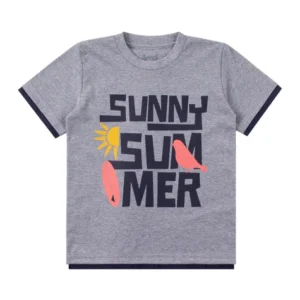 Conjunto de punto mixto “Summer Sunny Summer” para niño , compuesto por dos piezas. Camiseta de punto (mínimo 85 % algodón), cuello redondo, estampado frontal, mangas y bajo con ribete en color contraste. Bermudas de sudadera (75 % algodón, 25 % poliéster), cinturilla elástica con cordón decorativo en la parte delantera y ribetes laterales en color contraste.