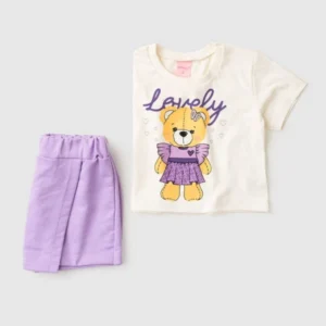 Precioso conjunto de algodĂłn y polar. La camiseta en blanco roto presenta un estampado frontal y pedrerĂa que le da un toque especial. Los shorts azules tienen un cordĂłn decorativo sĂşper mono y cĂłmodo.